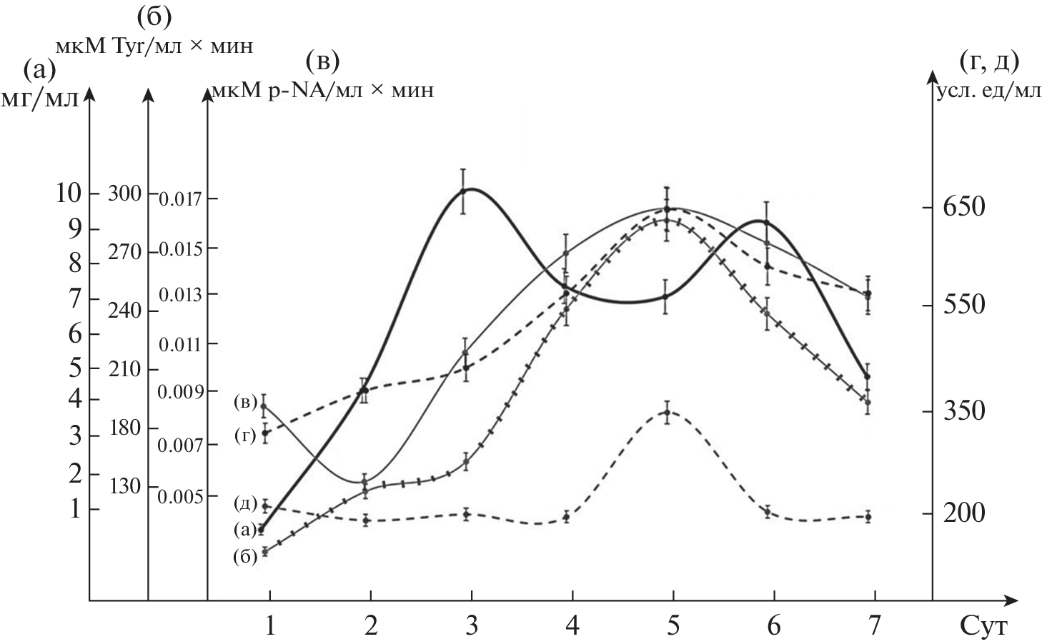 - Popova E.A., Osmolovskiy A.A., Kreier V.G. et al. Production by Aspergillus ustus strain of proteinases highly activeagainst fibrillar proteins. Mikologiya i fitopatologiya. 2019. V. 53 (4). P. 229–235. https://doi.org/10.1134/S0026364819040111