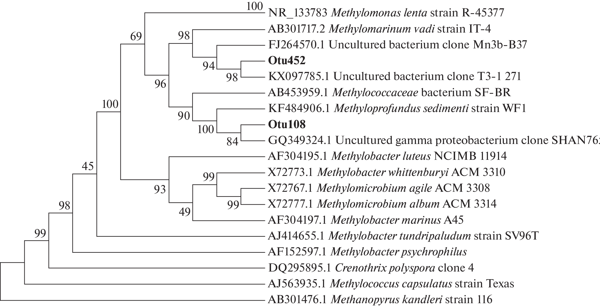 - Tikhonova E.N., Kadnikov V.V., Rusanov I.I., Beletsky A.V., Zakharova E.E., Samylina O.S., Ravin N.V., Pimenov N.V. Methane-oxidizing activity and phylogenetic diversity of aerobic methanotrophs in the Laptev Sea upper sediment horizons // Microbiology. 2021. V. 90. P. 314–323.
