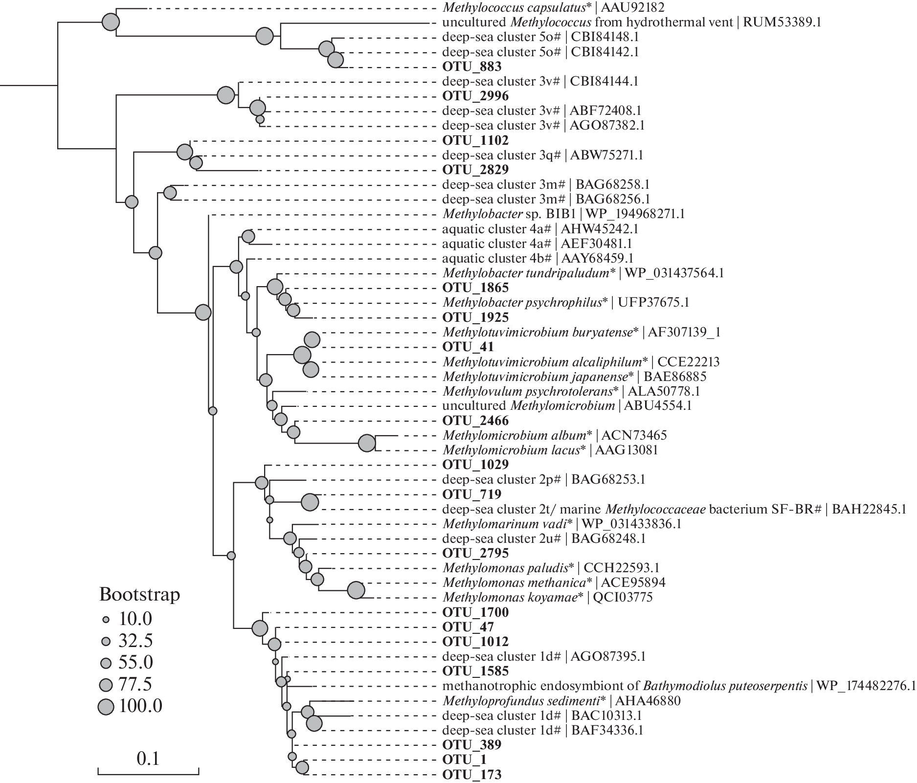 - Hirayama H., Takaki Y., Abe M., Imachi H., Ikuta T., Miyazaki J., Tasumi E. Multispecies populations of methanotrophic Methyloprofundus and cultivation of a likely dominant species from the Iheya North deep-sea hydrothermal field // Appl. Environ. Microbiol. 2022. V. 88. e0075821.