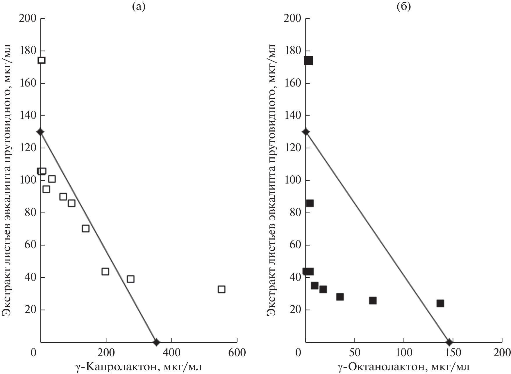 Целью работы является исследование природы ингибирования системы “кворум сенсинга” (QS) у модельной бактерии Chromobacterium subtsugae 026 (ранее – C. violaceum 026) экстрактом листьев эвкалипта прутовидного (Eucalyptus viminalis Labill) с идентификацией в его составе молекул с соответствующим вариантом биологической активности. Тестирование цельного экстракта показало выраженную QS-ингибирующую активность, развивающуюся в широком диапазоне концентраций, в несколько десятков раз ниже требуемых для подавления бактериального роста (соотношение МИК50/EC50 = 43.6). Химический анализ обнаруживал в экстракте присутствие шести малых молекул растительного происхождения (пирогаллол, 2,3-дигидро-3,5-дигидрокси-6-метил-4H-пиран-4-1, цимол, 4-((1E)-3-гидрокси-1-пропенил)-2-метоксифенол, галловая и пальмитиновая кислоты). QS-ингибирующий эффект этих соединений в отношении Chromobacterium spp. ранее был показан в экспериментах in vitro или предсказан на моделях in silico. Среди минорных компонентов анализируемого экстракта идентифицированы γ-капролактон и γ-октанолактон, структуры которых демонстрировали сходство с автоиндукторами QS – ацилированными гомосеринлактонами. Исследование химически синтезированных аналогов данных молекул в биотесте на C. subtsugae 026 впервые показало наличие у них QS-ингибирующей активности, характеризуемой величинами ЕС50 = 354.2 и 145.6 мкг/мл соответственно. Обогащение цельного экстракта листьев эвкалипта прутовидного γ‑капролактоном или γ-октанолактоном существенно усиливало QS-ингибирующее действие подобных композиций, при изоболографическом анализе оцениваемое как взаимодополняющий (аддитивный) или взаимно потенцируемый (супераддитивный) эффекты.