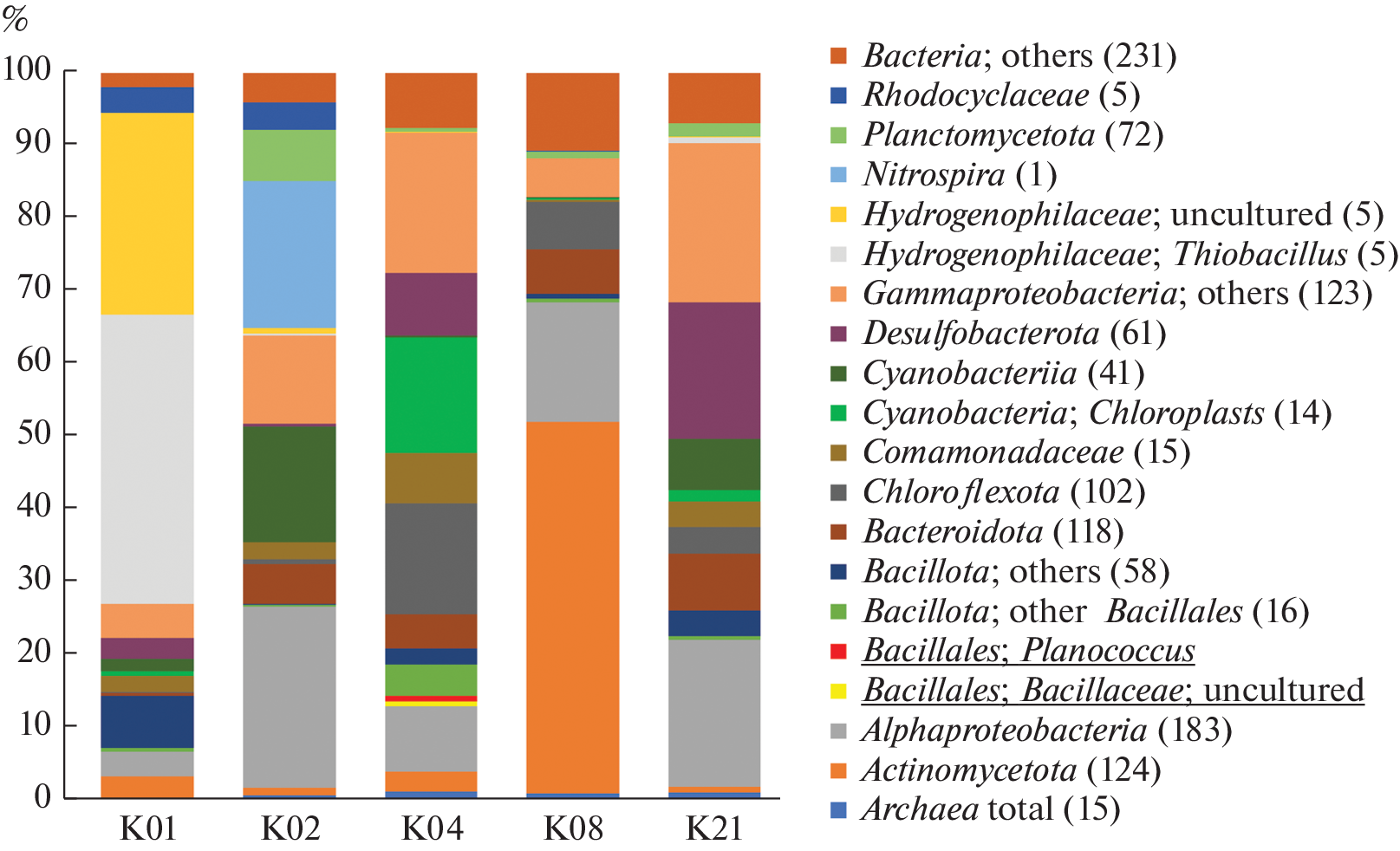 - Gavrilov S.N., Prokof’eva M.I., Klyukina A.A., Merkel A.Y., Zavarzina D.G., Potapov E.G., Maslov A.A. Diversity of novel uncultured prokaryotes in microbial communities of the Yessentukskoye underground mineral water deposit // Microbiology (Moscow). 2022. V. 91. P. 28‒44.