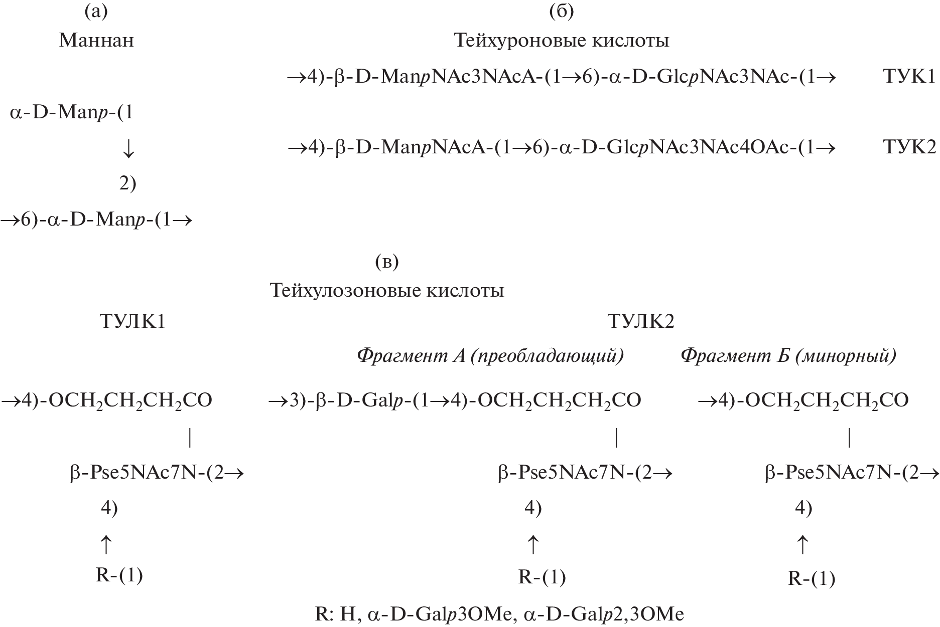 - Naumova I.B., Shashkov A.S., Tul’skaya E.M., Streshin-skaya G.M., Kozlova Y.I., Potekhina N.V., Evtushenko L.I., Stackebrandt E. Cell wall teichoic acids: structural diversity, species specificity in the genus Nocardiopsis, and chemotaxonomic perspective // FEMS Microbiol. Rev. 2001. V. 25. P. 269–283.