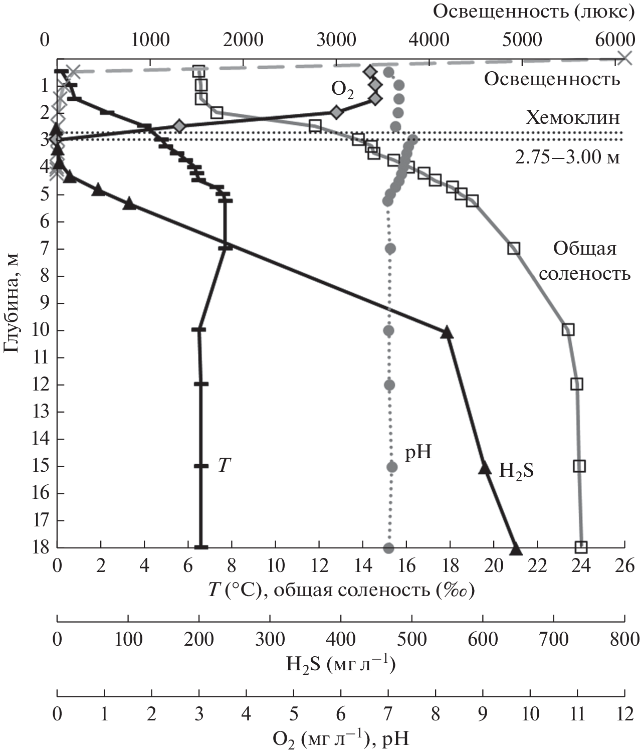 - Kharcheva A.V., Krasnova E.D., Gorlenko V.M., Lunina O.N., Savvichev A.S., Voronov D.A., Zhiltsova A.A., Patsaeva S.V. Depth profiles of spectral and hydrological characteristics of water and their relation to abundances of green sulfur bacteria in the stratified lakes of the White sea // Proceedings of SPIE ‒ The International Society for Optical Engineering. 2016. V. 9917. P. 99170Q-1–99170Q-16. https://doi.org/10.1117/12.2229855