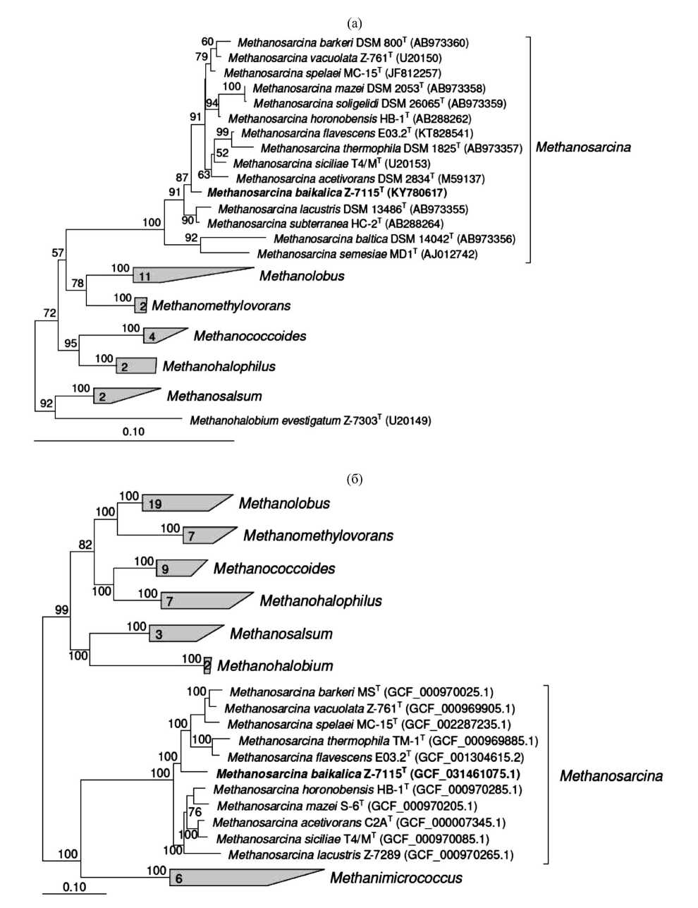 Ранее из зоны нефтепроявления центральной части Байкала были выделены первые представители метаногенных архей – использующий водород M ethanobacterium flexile Z-7215 и Methanosarcina sp., штамм Z-7115T (Жилина и соавт., 2017). В этой работе мы приводим полное филогенетическое и фенотипическое описание выделенного штамма Methanosarcina и на основании проведенных исследований предлагаем отнести его к новому виду – Methanosarcina baikalica s p. nov.