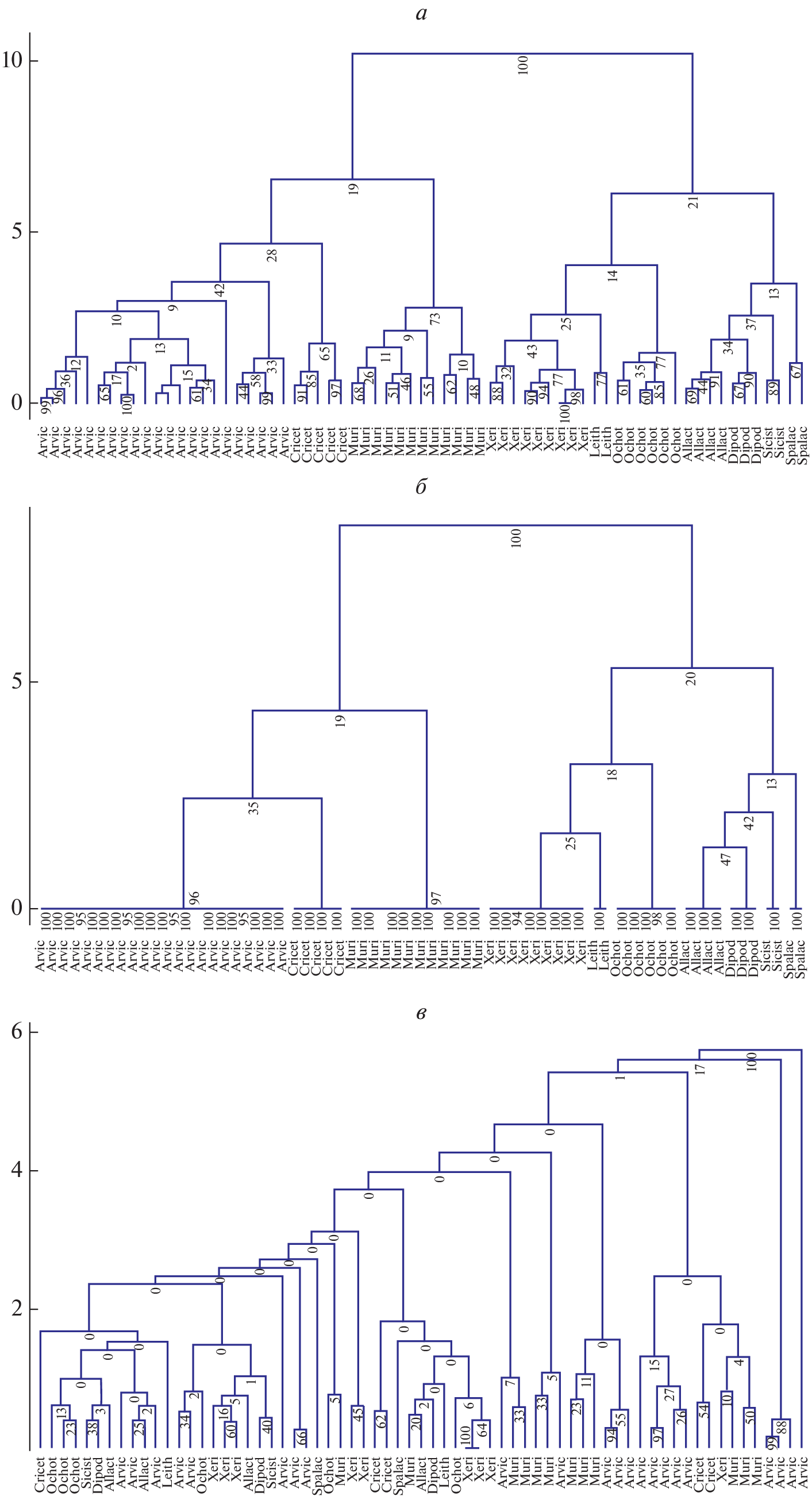- Abramson N.I., Bodrov S.Y., Bondareva O.V., Genelt-Yanovskiy E.A., Petrova T.V. (2021) A mitochondrial genome phylogeny of voles and lemmings (Rodentia: Arvicolinae): evolutionary and taxonomic implications. PLoS One. 16, e0248198.