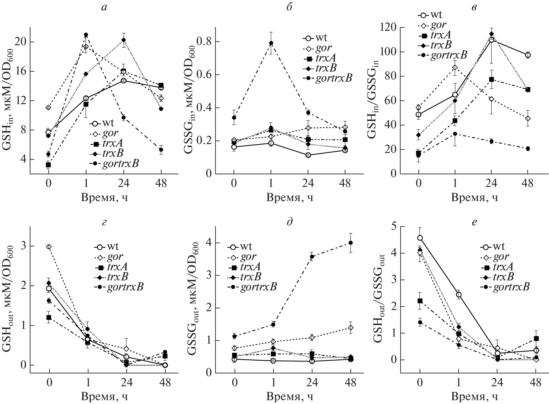 - Smirnova G., Muzyka N., Oktyabrsky O. (2012) Transmembrane glutathione cycling in growing Escherichia coli cells. Microbiol. Res. 167, 166–172. https://doi.org/10.1016/j.micres.2011.05.005