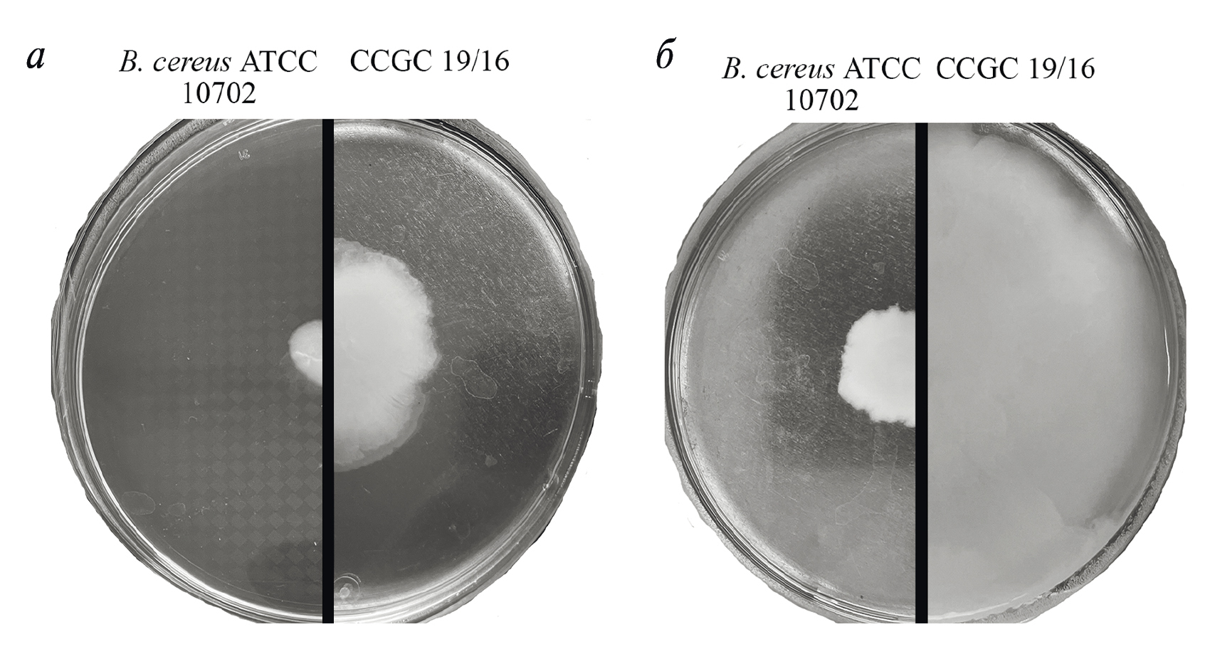 B. cereus АТСС 10702 | CCGC 19/16 | B. cereus АТСС 10702 | CCGC 19/16 | |||