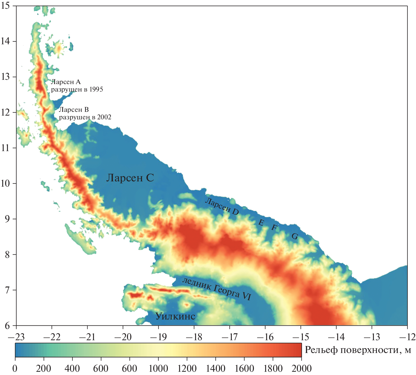 - Wang S., Liu H., Jezek K. et al. Controls on Larsen C Ice Shelf retreat from a 60-year satellite data record // Journal of Geophysical Research: Earth Surface. 2022. V. 127. Article e2021JF006346.