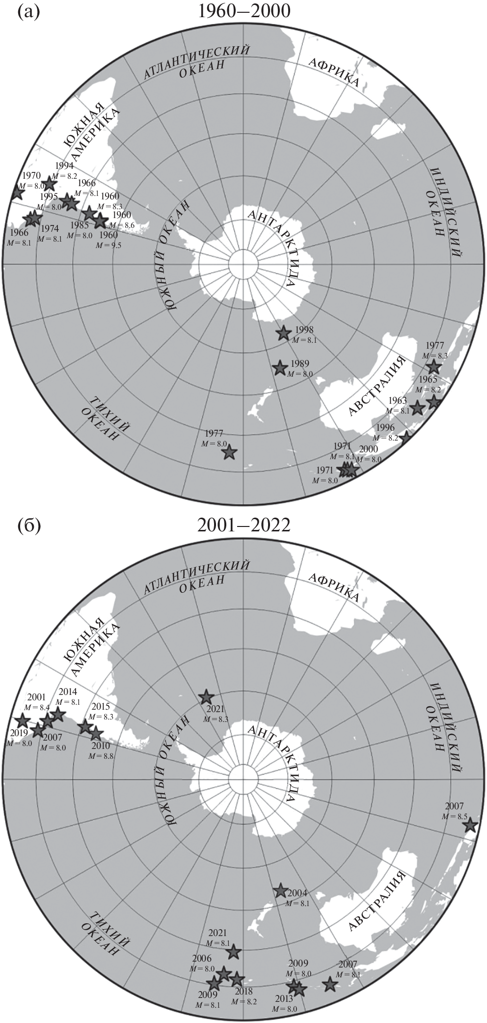 - Cesca S., Sugan M., Rudzinski L. et al. Massive earthquakes swarm driven by magmatic intrusion at the Bransfield Strait, Antarctica // Communications Earth & Environment. 2022. V. 3. Article 89.