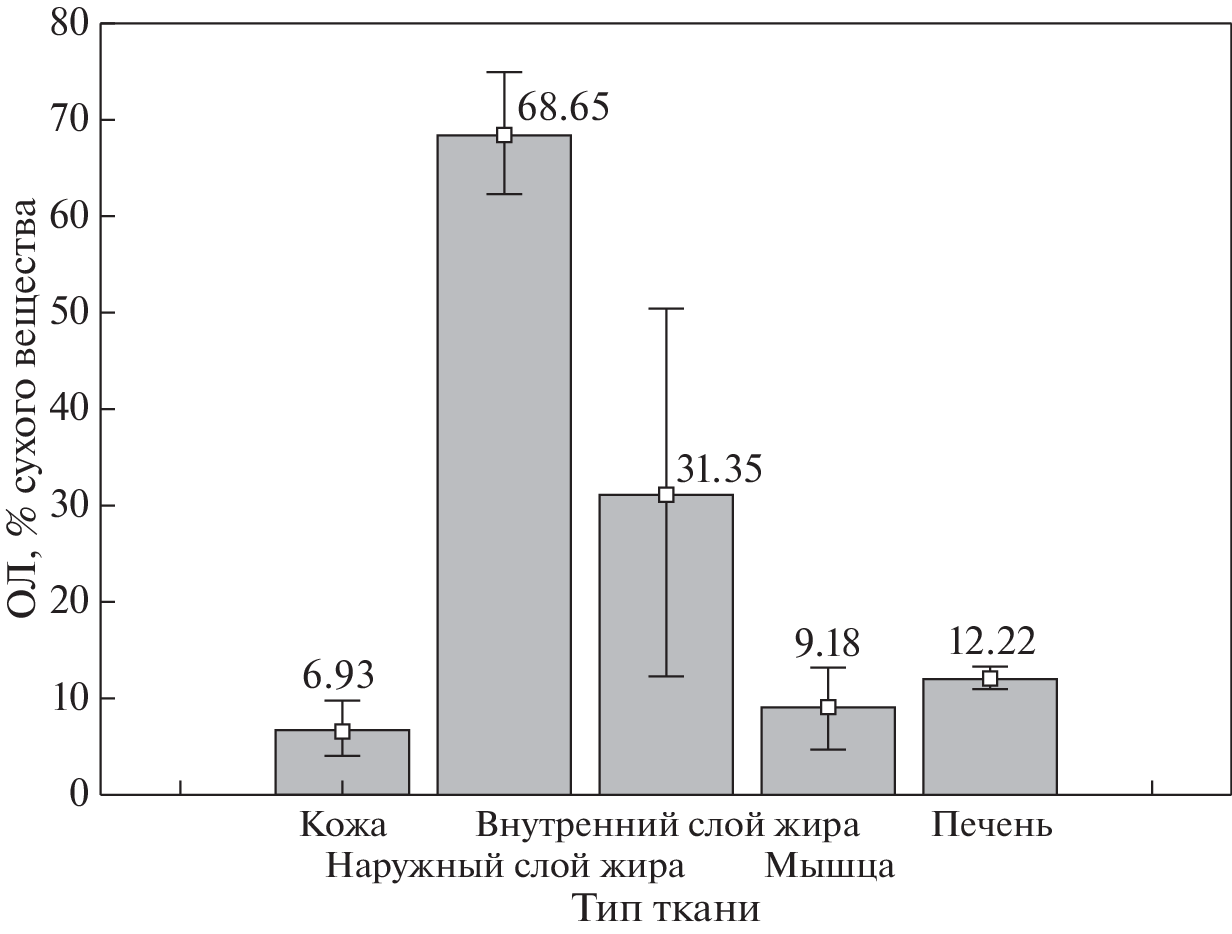 A study was made of the composition of lipids in different tissues of gray whales Eschrichtius robustus, and the lipid profiles of tissues with different functional loads were compared. Five types of tissues (skin, muscle, liver, outer and inner layers of fat) were collected from seventeen individuals of eastern gray whales during the permitted aboriginal fishing in the village. Lorino of the Chukotka Autonomous Okrug in the summer of 2020. For all of the listed tissues, the composition of total lipids and their individual lipid classes was studied by high-performance thin-layer chromatography (HPTLC), the identification and description of lipid profiles of different types of tissues was carried out, which made it possible to identify their general and specific features of lipid metabolism according to the studied parameters. Comparative analysis of lipid profiles of tissues revealed individual lipid classes that make the greatest contribution to discrimination between different tissues. Both the content of total lipids and individual lipid classes varied significantly in different tissues. At the same time, 93% of the differences between tissues are two functions that are most closely related to the content of metabolically associated diacylglycerols (DAG), monoacylglycerols (MAG), triacylglycerols (TAG) and waxes, mainly energetic lipids, in tissues. The paper discusses the relationship between the qualitative and quantitative composition of lipids and the functional load and the physiological role of tissues. The metabolic features of the accumulation and consumption of lipid classes during the feeding period were noted. The revealed differences in certain parameters of lipid metabolism of the outer and inner layers of fat are due to different metabolic activity of tissues and their function in the body, which, among other things, is provided by lipids.