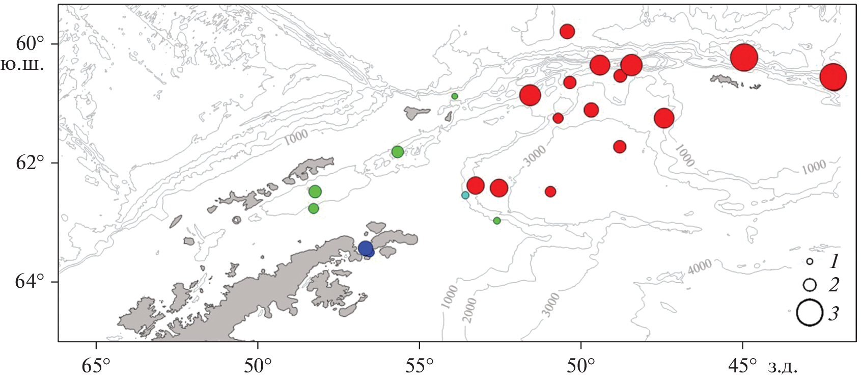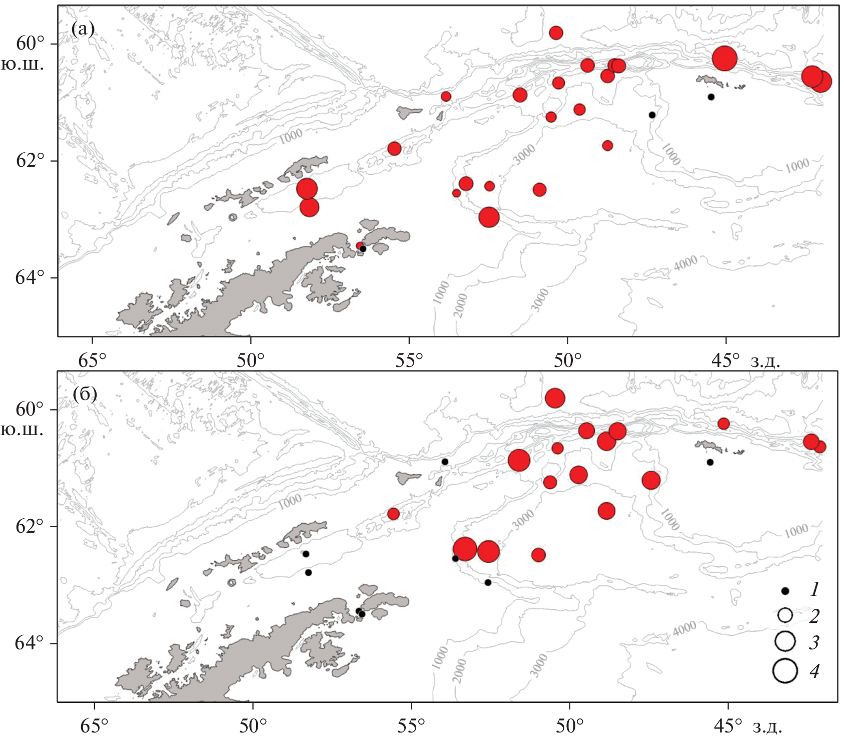 - White M.G., Piatkowski U. Abundance, horizontal and vertical distribution of fish in eastern Weddell Sea micronekton // Polar Biol. 1993. V. 13. P. 41–53. https://doi.org/10.1007/BF00236582