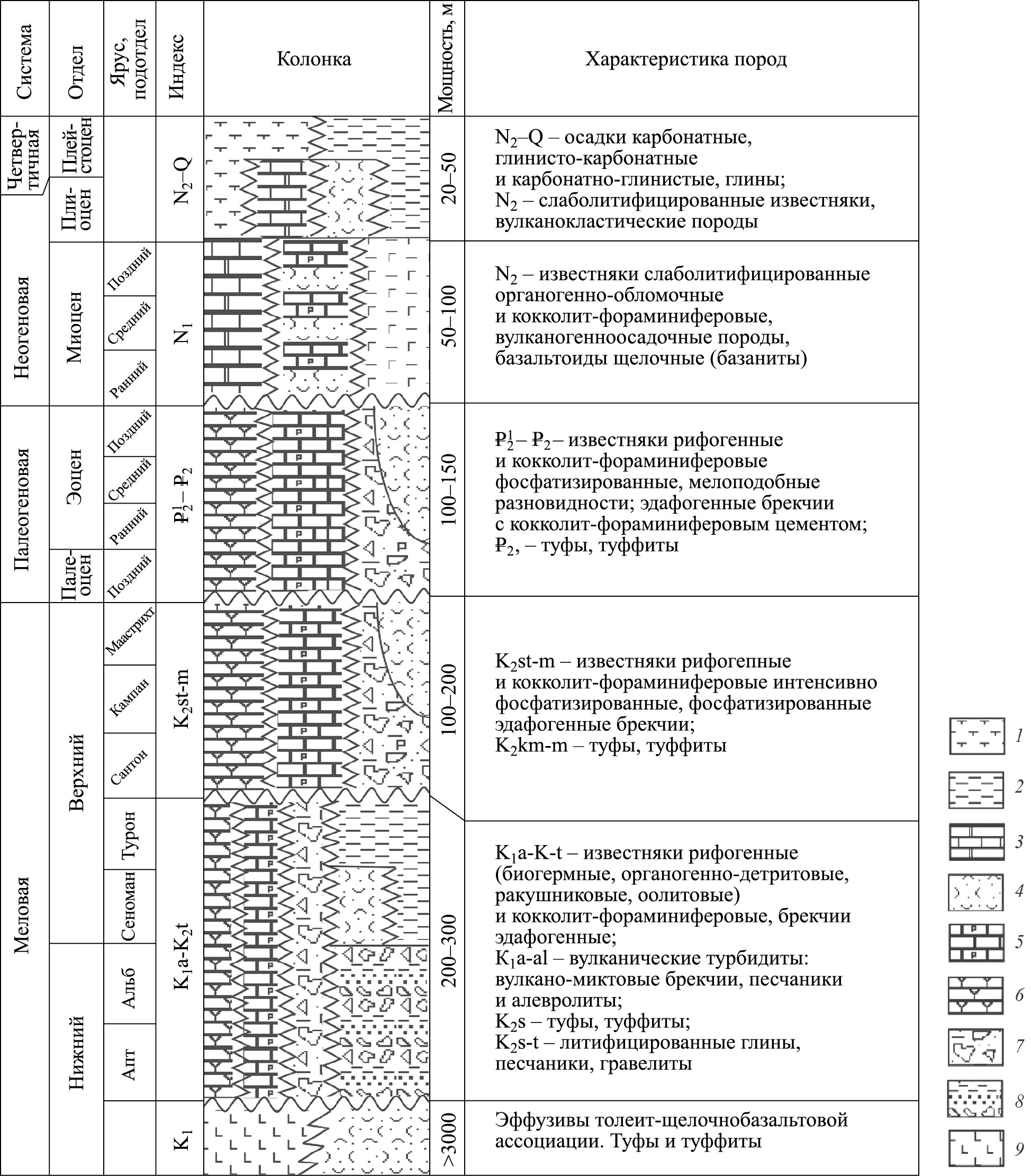 Рис. 4. Сводный геологический разрез гайотов Федорова и Бутакова