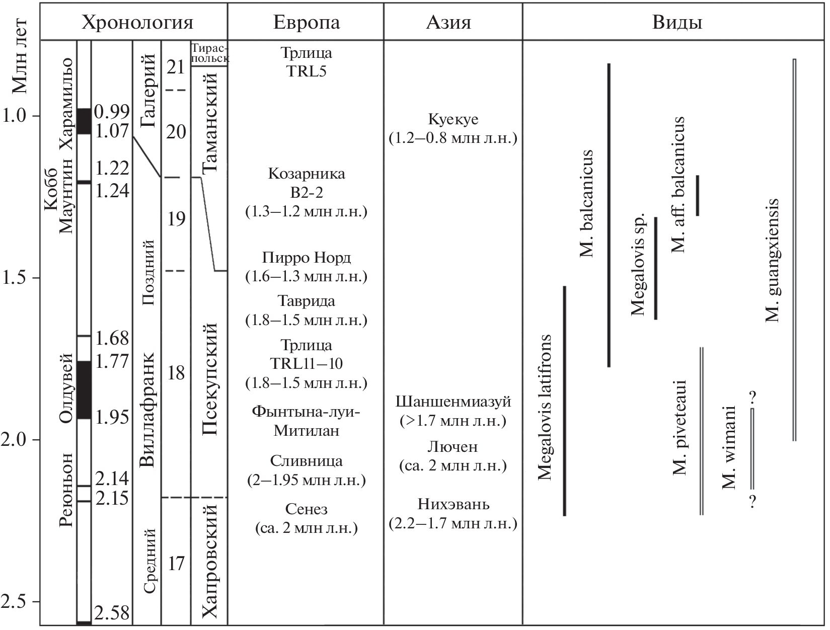 - Radulesco C., Samson P. Biochronology and evolution of the Early Pliocene to the Early Pleistocene mammalian faunas of Roumania // Boll. Soc. Paleontol. Ital. 2001. V. 40. P. 285–291.