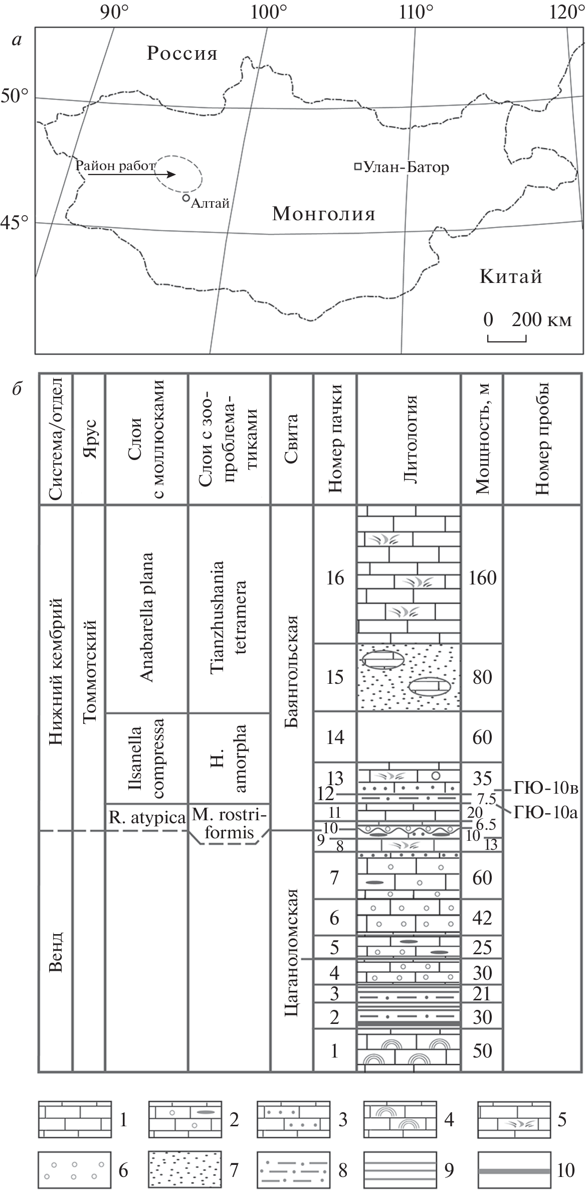 - Khomentovsky V.V., Gibsher A.S. The Neoproterozoic–lower Cambrian in northern Govi-Altay, western Mongolia: regional setting, lithostratigraphy and biostratigraphy // Geol. Mag. 1996. V. 133. № 4. P. 371–390.