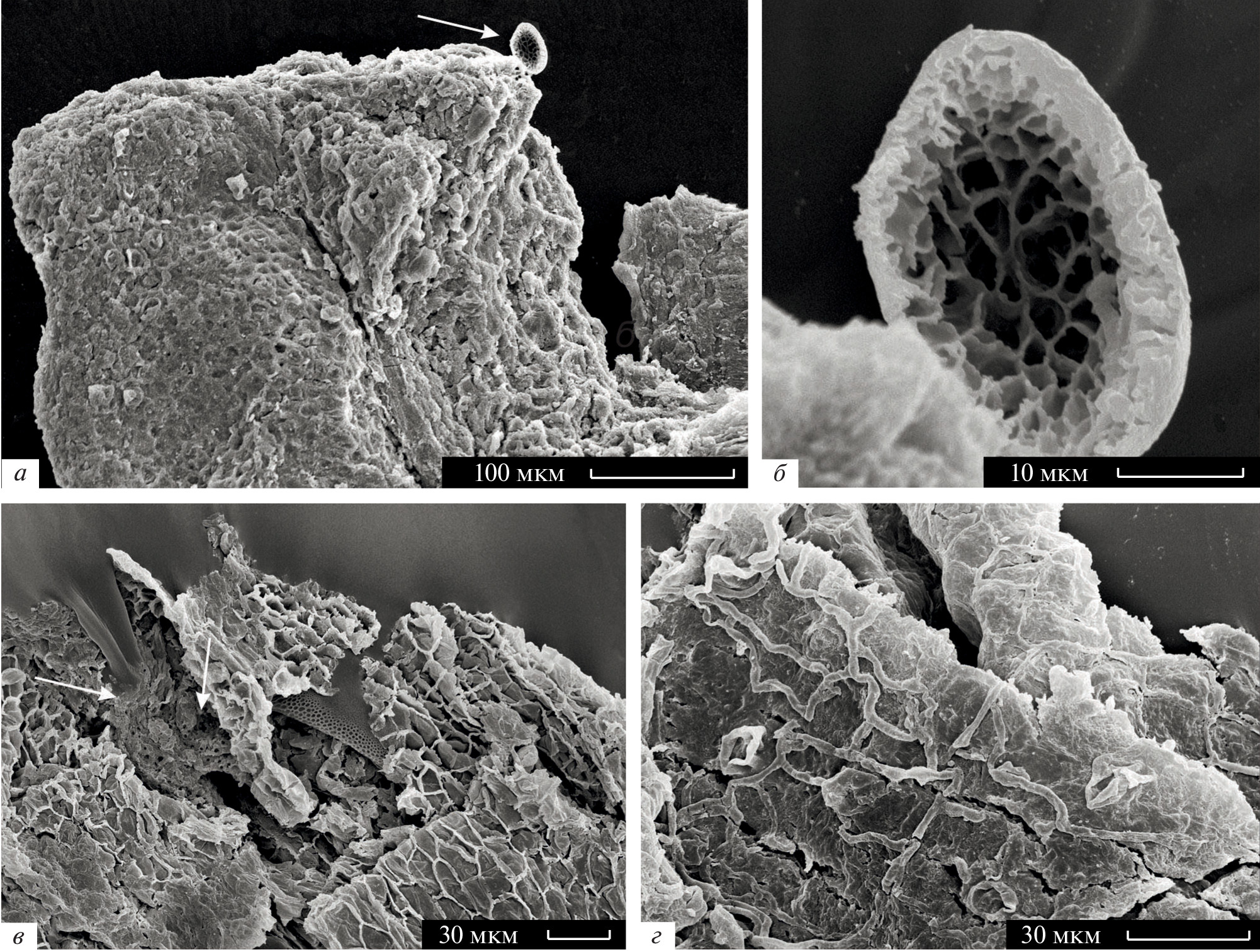 - Maslova N.P., Kodrul T.M., Vasilenko D.V. First record of bacteriomorphic organisms in platanoid infructescences from the Campanian Kundur locality, Amur Region // Paleontol. J. 2014. V. 48. № 5. P. 563–570.