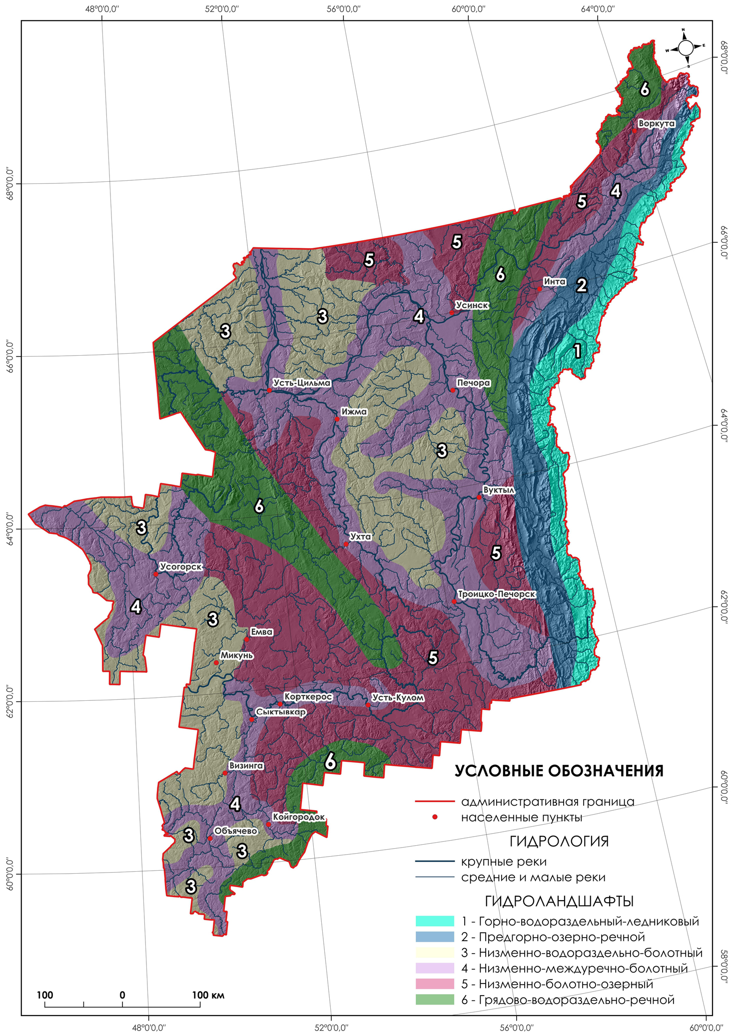 Рисунок 2. Карта-схема гидроландшафтного райнирования территории Республики Коми.