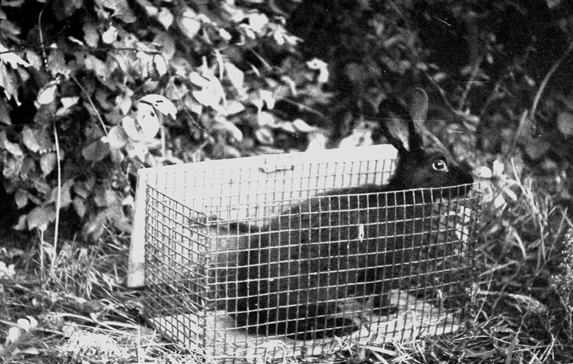 Figure 3. Rabbit in a cage-trap. Photo by E.V. Panyukova.