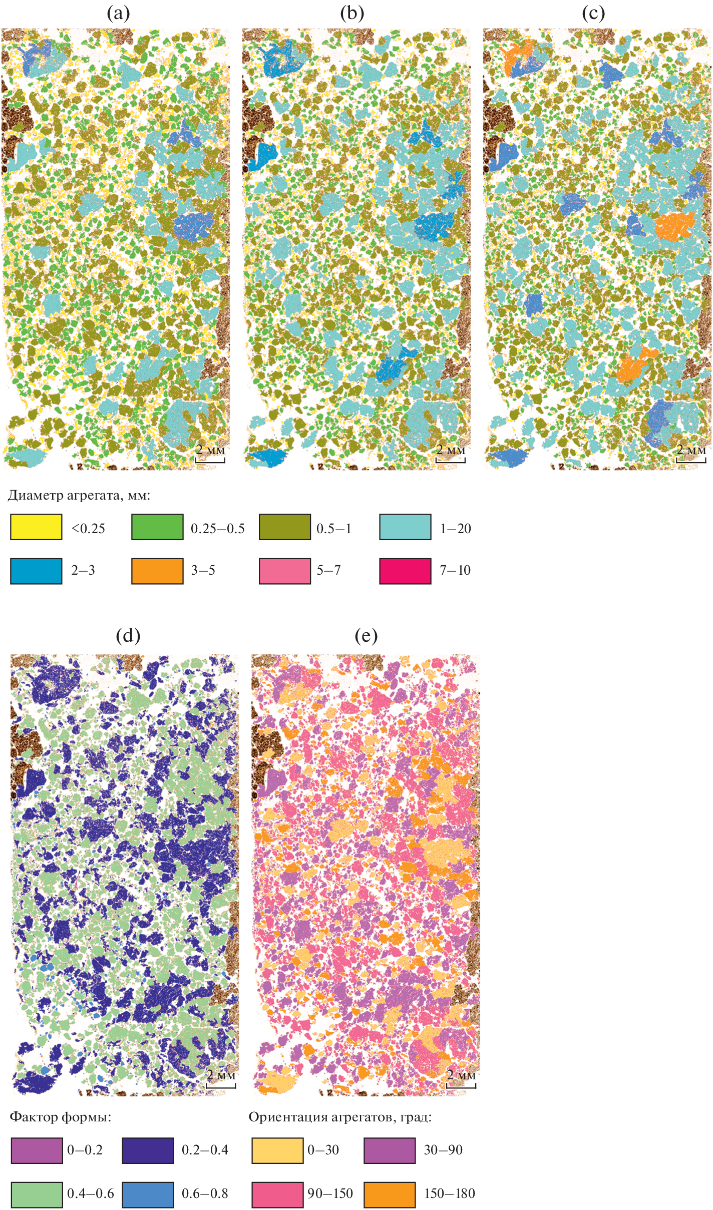The methodological possibilities of micromorphological soil research making it possible to analyze digital images of soil thin sections at a quantitative level are presented in this study. A new software Thixomet Pro has been tested for quantitative micromorphological study of sail on the example of soil thin sections from the surface horizons of Haplic Chernozem. Soil samples for preparing thin sections were collected on the territory of scientific and industrial field test plot for assessing the impact of agro technologies in grain crop rotation on soil properties (Kursk region, Russia). In the field test plot, conventional agro technology (real tillage) and no-till are compared. Soil sampling was carried out in two replications from depth of 10–15 cm. The analysis revealed the variability of microstructure of Haplic Chernozem in the size, shape and orientation of aggregates associated with the use of agricultural technologies with and without plowing in grain crop rotation. In the Сhernozem with no–till, aggregates are generally larger compared to the aggregates of Сhernozem with conventional agro technology. This is noted at all levels of comparison of direct seeding and conventional agricultural technology: in the minimum diameter, the fraction 1–2 mm prevails against 0.25–0.5 mm, respectively, in the average diameter, fractions 1–2, 2–3 and 3–5 mm prevail against 0.5–1 and 0.25–0.5 mm, respectively, in the maximum diameter, fractions 1–2, 2–3 and 3–5 mm prevail against 0.5–1, 0.25–0.5 and 1–2 mm, respectively. It is also shown that less rounded and isometric aggregates are formed during direct seeding. With direct seeding, the proportion of aggregates with a form factor of 0.2–0.4 is higher and the proportion of aggregates with a form factor of 0.4–0.6 is lower than with traditional technology. The proportion of subhorizontal aggregates in direct seeding is higher compared to traditional processing (54.3 and 34.1% respectively).