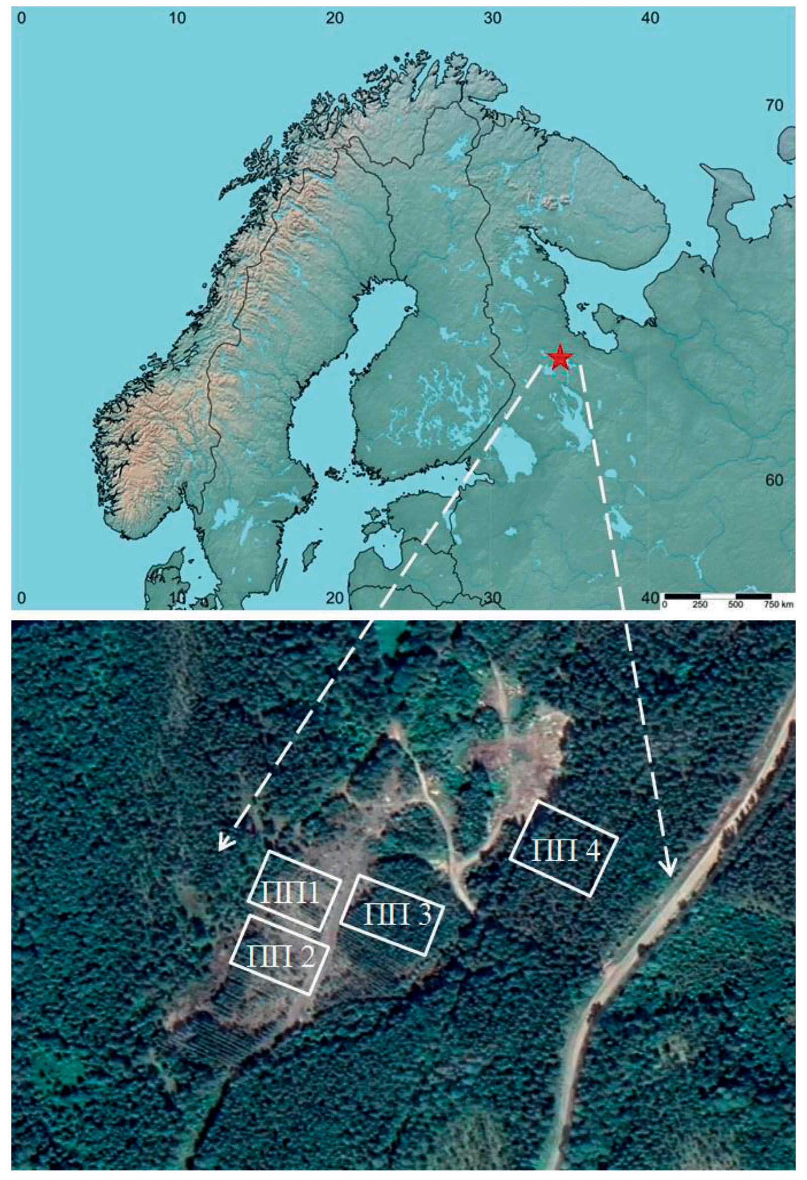Район исследования расположен в юго-восточной краевой части древнего докембрийского Фенноскандинавского кристаллического щита [35]. Четвертичные отложения представлены флювиогляциальными формами рельефа – узкими озовыми грядами, сложенными песком и гравием. По почвенно-географическому районированию территория относится к Карельской провинции зоны подзолистых почв, глееземов и подзолов средней тайги Европейско-Западно-Сибирской таежно-лесной почвенно-климатической области [32].