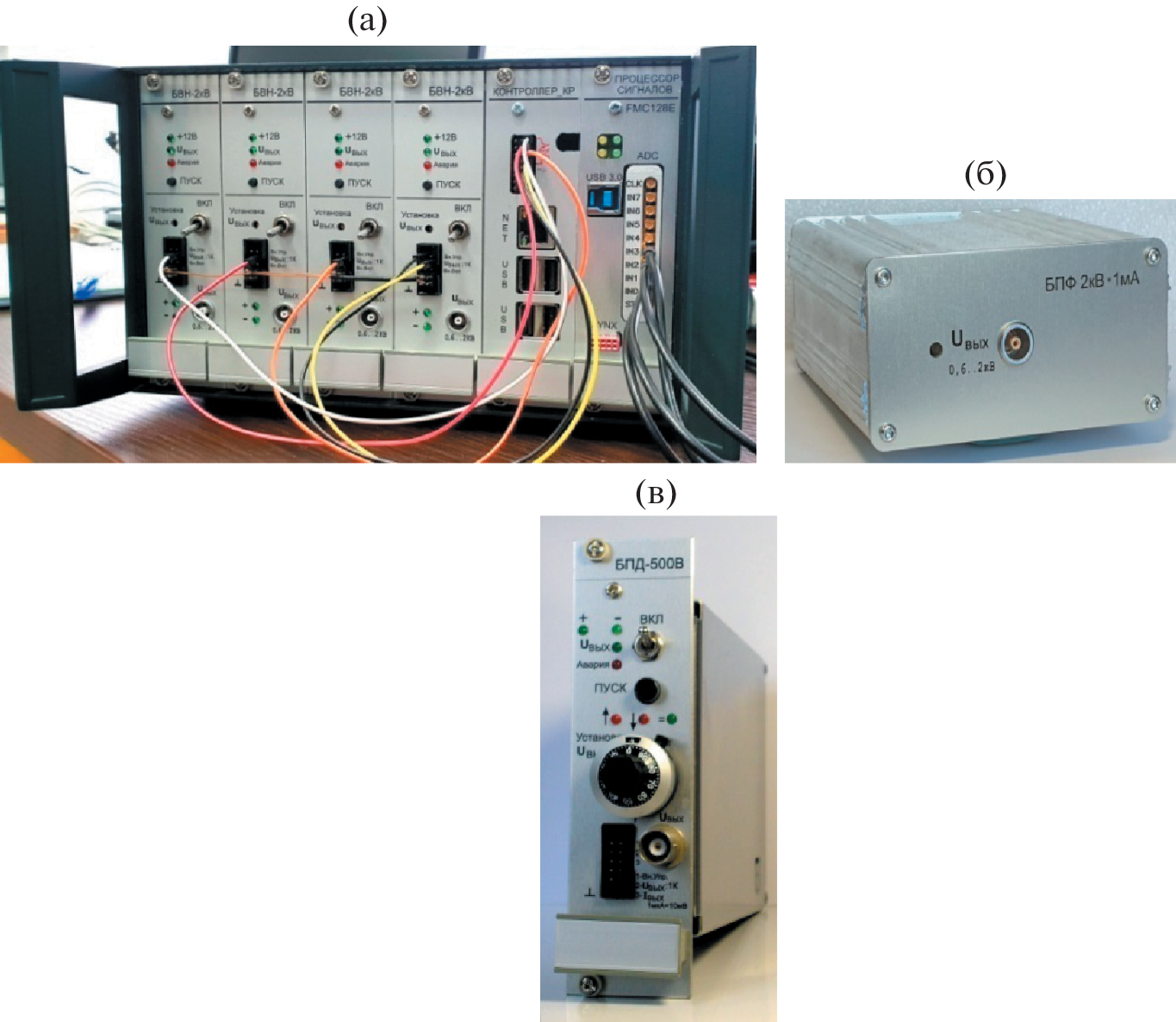 Precision high-voltage sources have been developed for nuclear radiation detectors (semiconductor detectors, detectors based on photoelectronic multipliers, etc.). Instead of a specialized high-voltage transformer, a common network (~220 V) POL-12012 transformer was used together with a voltage multiplier. The electrical parameters of the units are as follows: range, from 0 to ±2500 V; power, ≤10 W; efficiency, up to 77%; ripples at a load of 2 MΩ (2 kV), 1 mV; conversion frequency, up to 150 kHz; manual/external control; smooth voltage rise/drop; shutdown upon an overload; temperature drift, ≤0.004%/°C; and operating temperature, –40 to +60°C. Implementation: 3U Euromechanics or an autonomous unit of 80 × 80 × 40 mm. The sources are used in a number of experiments and industrial plants, where they provide quality, reliability, a temperature range, and the required functionality.