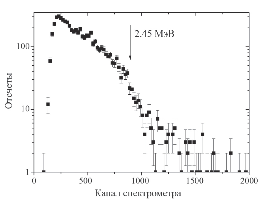 Рис. 11. Спектр протонов отдачи при регистрации нейтронов с энергией 2.45 МэВ на ГДЛ.