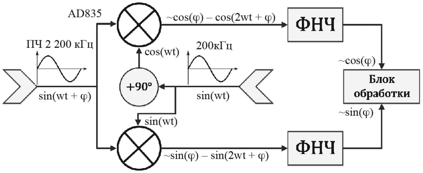 Рис. 4. Упрощенная схема квадратурного демодулятора.