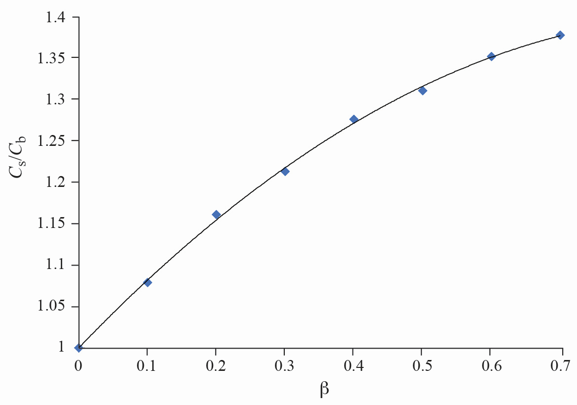 Рис. 5. Зависимость отношения корректирующих коэффициентов Cs /Cb от величины β.