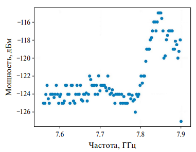 Измеренное значение мощности насыщения составило – 124 ± 2 дБм, что соответствует примерно 10 фотонам частоты сигнала при времени накопления 0.1 мкс. Достигнутые значения мощности насыщения позволяют использовать разработанный усилитель для определения квантового состояния кубита методом дисперсионного считывания.