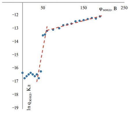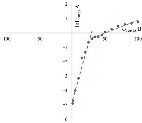 т. е. зонд работает в бесстолкновительном режиме [9–11], следовательно, он вносит в плазму пренебрежимо малые возмущения, и мы с полным правом можем воспользоваться для интерпретации полученных результатов классической теорией ленгмюровского зонда, по крайней мере, для электронной ветви ВАХ.