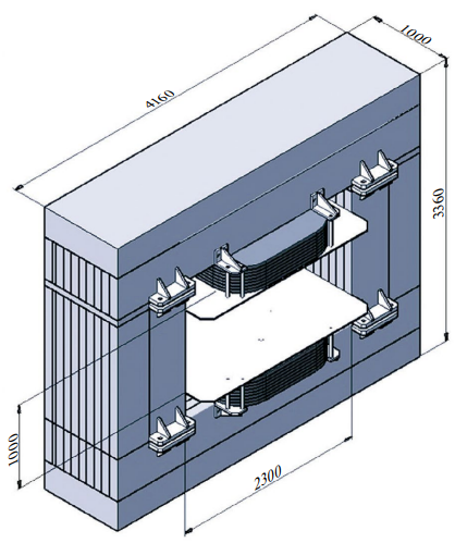 Рис. 1. Широкоапертурный спектрометрический магнит эксперимента СПАСЧАРМ. Стальные экраны для защиты трековых детекторов от рассеянного магнитного поля не показаны.
