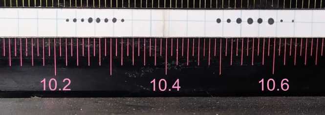 Генератор работал в режиме с низкочастотной модуляцией выходной мощности с частотой 500 Гц, длительностью импульсов 0.3 мс и амплитудой выходной мощности 500 Вт. Максимальная средняя мощность излучения лазера достигала 200 мВт. Перестроечная характеристика спектра CO₂-лазера была определена с помощью калибровочного спектрометра. Отпечаток спектра селективного CO₂-лазера, записанный на термобумаге калиброванного спектрометра, при его перестройке по длинам волн в пределах полос 10P (длина волны примерно 10.6 мкм) и 10R (длина волны примерно 10.3 мкм) представлен на рис. 2. В этих условиях было зарегистрировано по восемь линий в каждой полосе. Полученная перестроечная характеристика лазера была использована для калибровки нового спектрографа.