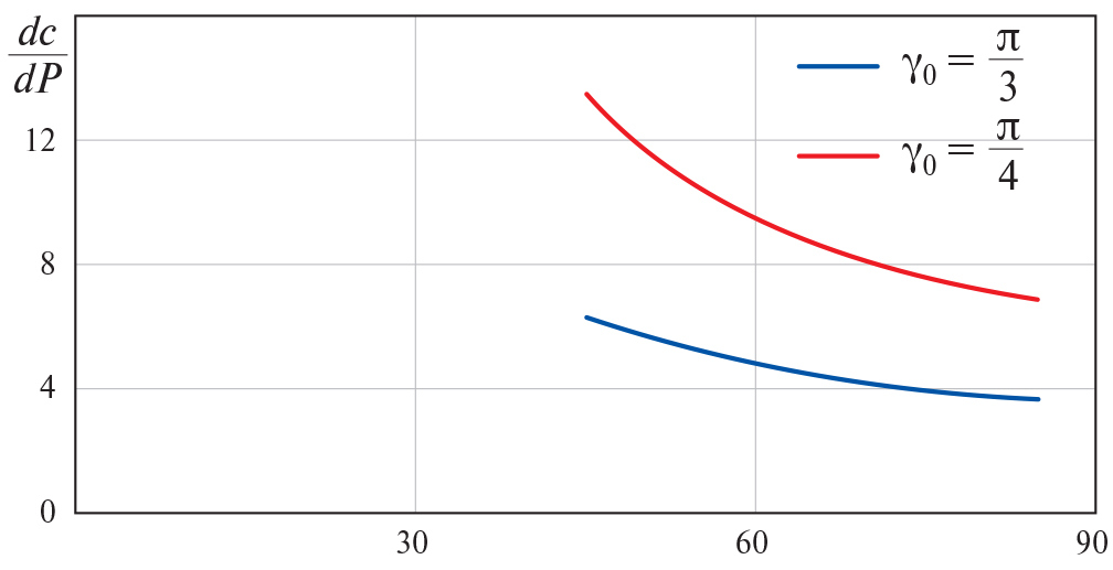 На рис. 2 построены графики значений пластической податливости , (где с – осадка штампа, – усилие на клин) в зависимости от параметра ω.