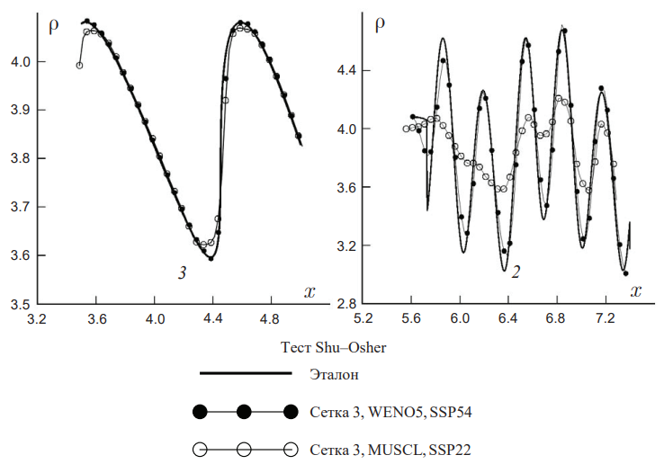 Рис. 4. Выбор эталонного решения для задачи Shu–Osher