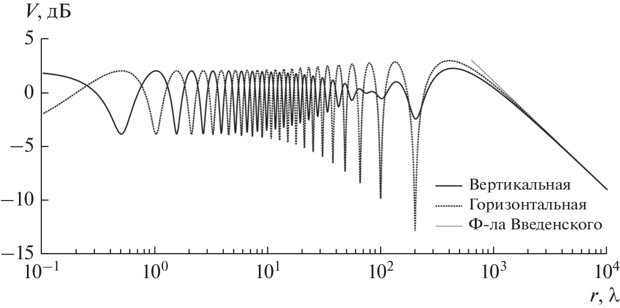 Исследованы особенности распространения сверхширокополосной волны над поверхностью Земли в двухлучевой модели. Показано, что существует предельное расстояние (точка срыва), до которого сверхширокополосная волна затухает примерно как в свободном пространстве с показателем затухания n = 2, не испытывая замираний, благодаря крайне малому времени автокорреляции сверхширокополосной волны; за точкой срыва показатель затухания волны становится равным n = 4.