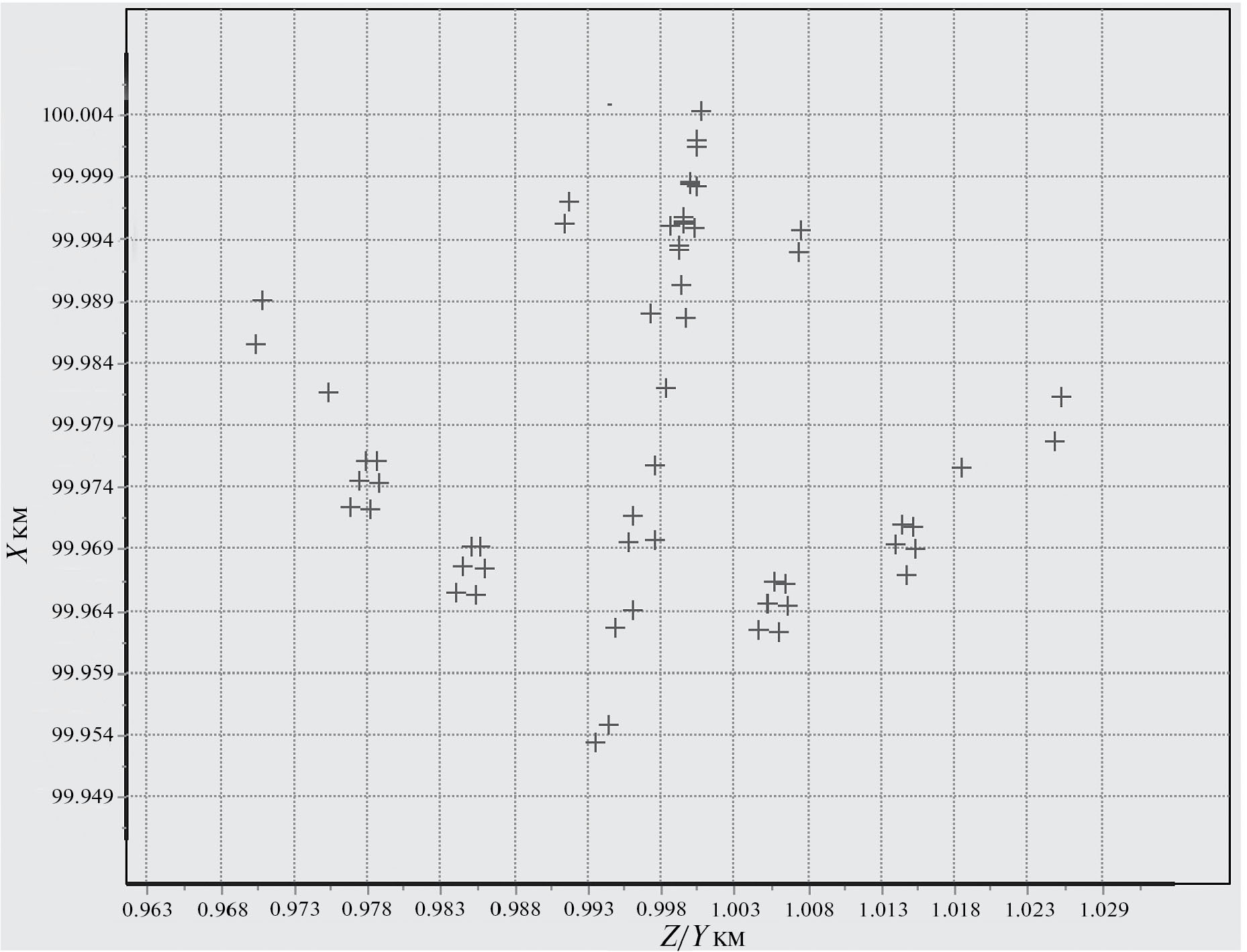 В настоящее время при моделировании радиолокационных эхосигналов широко используют геометрические модели отражающих объектов [1–4]. Они представляют собой точки, расположенные в некоторой области пространства. Конфигурация и количество точек, а также параметры отражаемых от них сигналов определяются условиями адекватности модели замещаемому объекту: в частности, адекватностью воспроизведения характеристик угловых шумов, обусловленных тем, что нормаль к фазовому фронту электромагнитной волны, отраженной от большого числа разнесенных по угловым координатам точек, формирует направление на эквивалентный центр отражения, блуждающий по поверхности объекта и даже выходящий за его пределы [5].