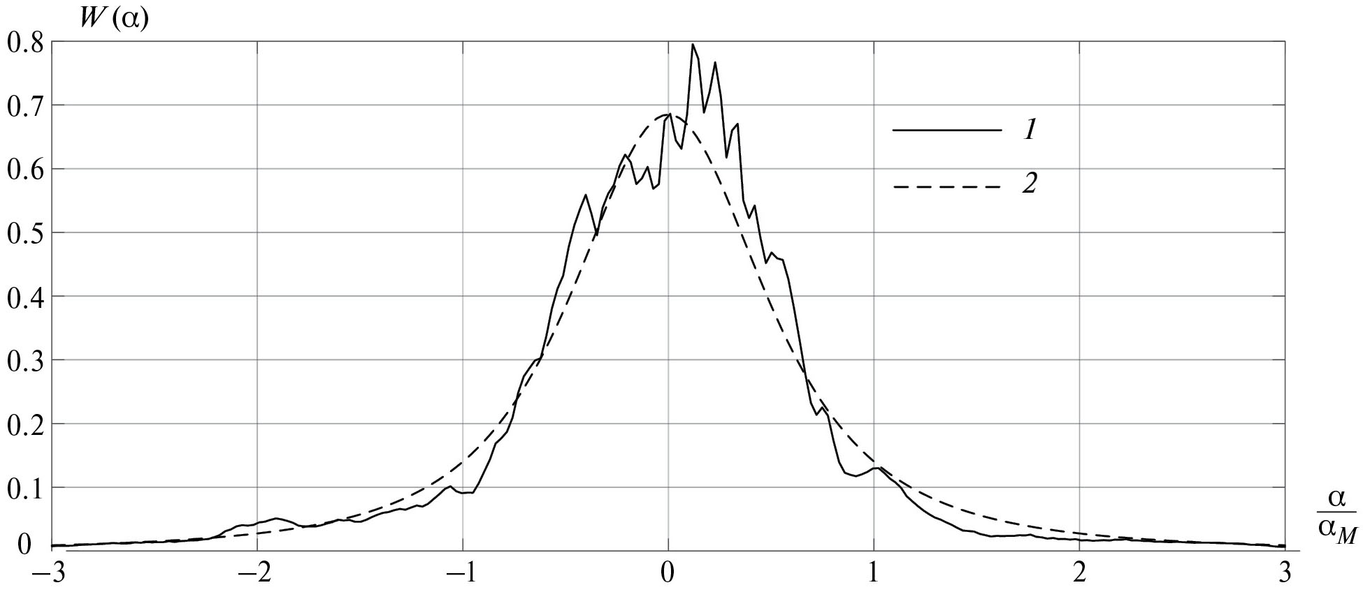 В качестве критерия адекватности моделирования угловых шумов будем использовать обычно применяемые для этих целей их корреляционную функцию, а также ПРВ [4–7].
