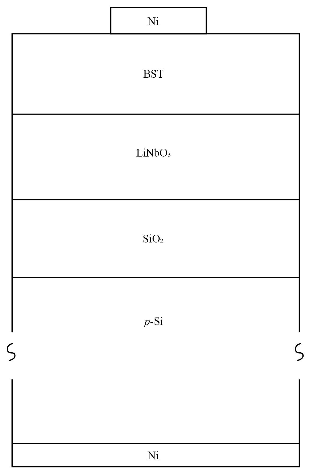Цель данной работы изучить электрофизические свойства структур типа металл–диэлектрик–полупроводник (МДП) на базе образцов Ni–Ba0.8Sr0.2TiO3–LiNbO3–SiO2–Si. Такая компоновка трех изолирующих слоев позволяет рассчитывать на сочетание всех заявленных выше преимуществ: сегнетоэлектрическая керамика Ba0.8Sr0.2TiO3 (BST) обладает высокими, близкими к 800, значениями эффективной диэлектрической проницаемости; ниобат лития является известным материалом для реализации и наблюдения нелинейных оптических эффектов. Экспериментальные результаты, использованные в наших работах [5–7], были получены на объектах, выращенных на пластинах из n-кремния. Поэтому для изучения влияния типа проводимости подложки на характеристики МДП-структур в данной работе опыты проводились на образцах, выращенных на пластинах p-Si.