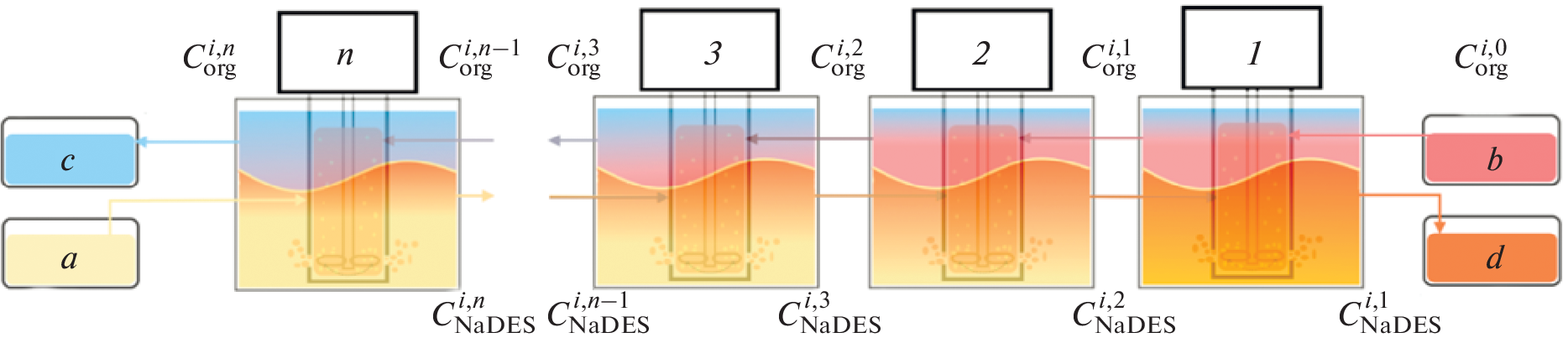 using commercial equipment, a series of NaDESs based on citric and malic acids, xylitol, and water was used for the first time in this work. The high extraction capacity of these NaDES was demonstrated in laboratory experiments, and the extraction mechanism was determined. A detailed study of the efficiency of extraction of heterocycles with varying process conditions allowed us to move on to studying the process using extractors