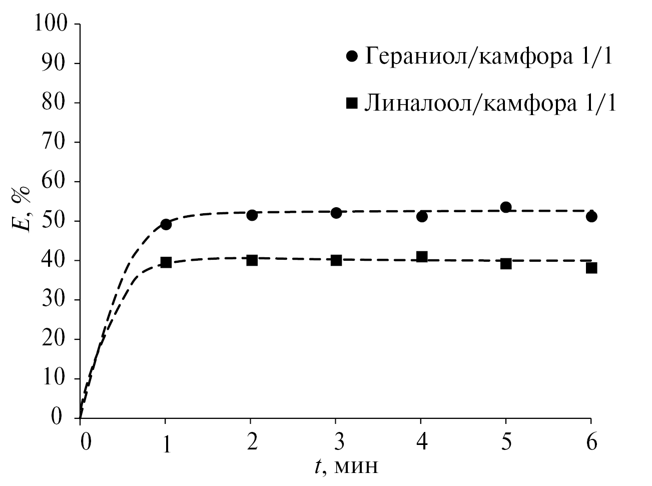 Гераниол/камфора 1/1 | 52.33± | 19.75 |