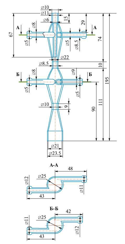 Рис. 2. Чертеж двухступенчатого микрореактора (микро-ВСА-2), использованного для синтеза. Размеры указаны в мм.