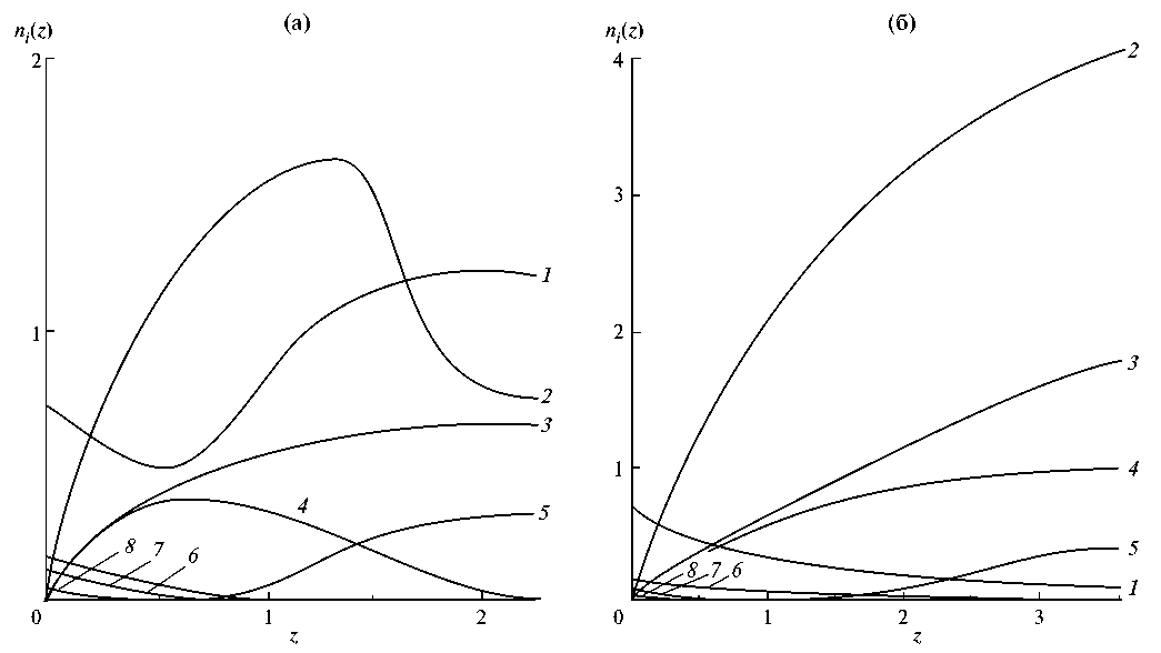 3. Fig. 2. Calculation of dimensionless flows ni(z) at the initial section