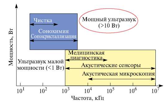 В работе [23] приводится классификация по применению ультразвуковых волн в зависимости от частоты и мощности (рис. 2).