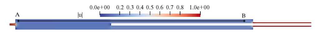 Рис. 5. Распределение модуля скорости.
