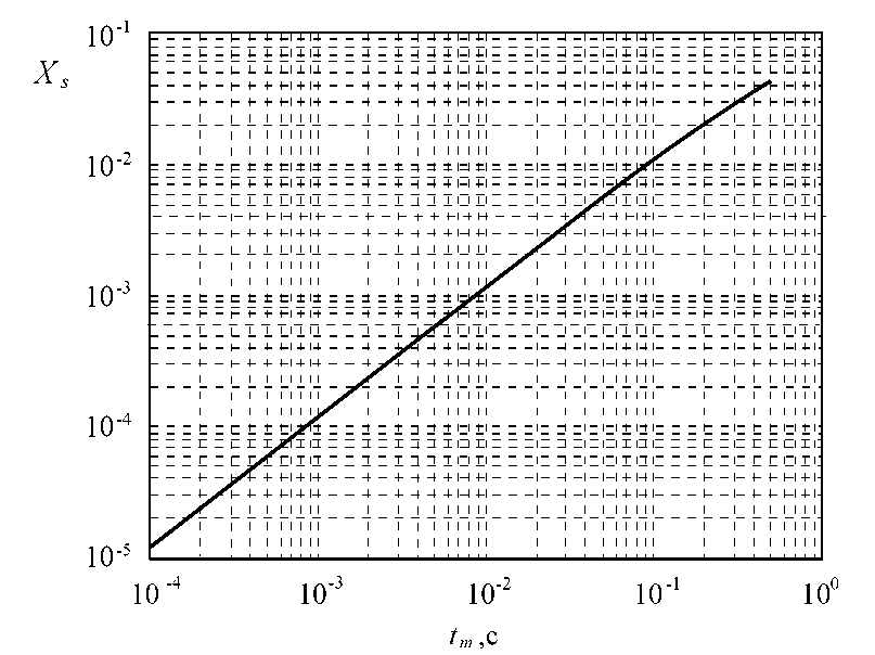 Рис. 2. Связь между индексом сегрегации Xs и временем смешения tm в микрореакторах при использовании йодид-иодатной методики [18].