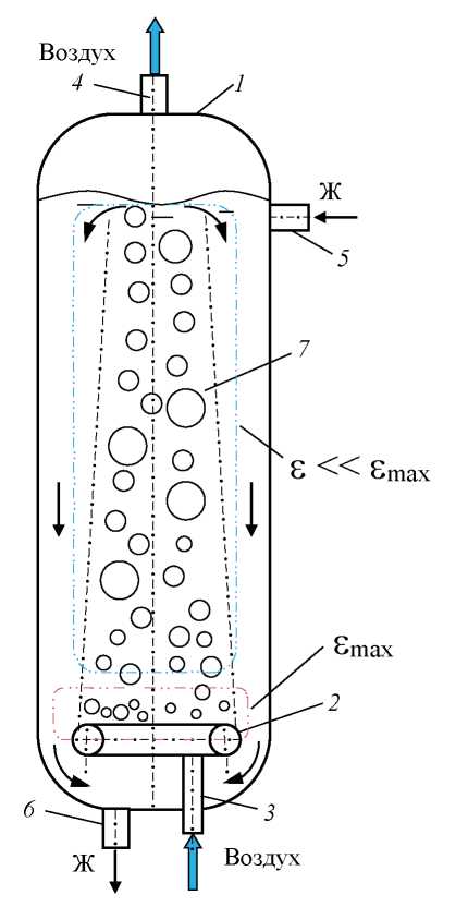 По современным представлениям удельная скорость диссипации энергии ε (Вт/кг) является определяющей характеристикой химико-технологической или биотехнологической аппаратуры как для традиционной крупномасштабной аппаратуры (в том числе абсорберов, используемых в биотехнологических процессах и для очистки сточных вод), для которой ключевыми уровнями смешения являются макро- и мезосмешение [1, 2], так и для микромасштабных аппаратов, где ключевым фактором является микросмешение [1, 3].
