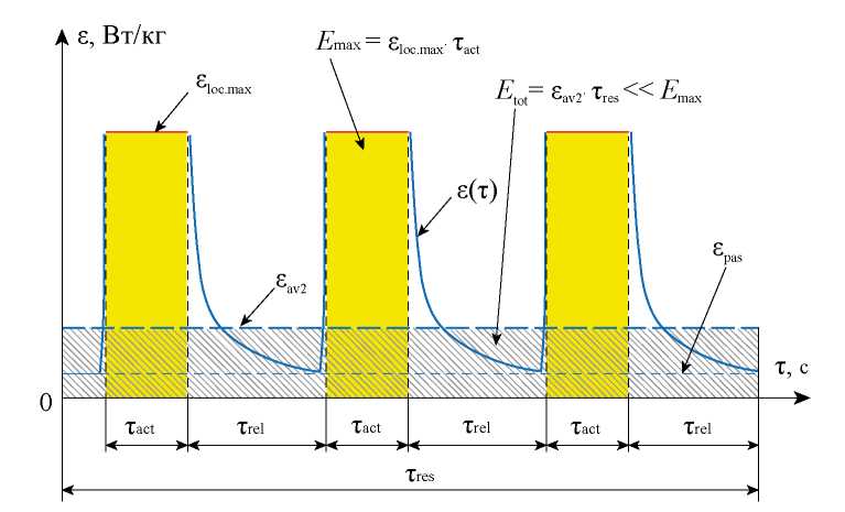 εloc.max локальное (максимальное) значение удельной скорости диссипации энергии в активной зоне, Вт/кг;