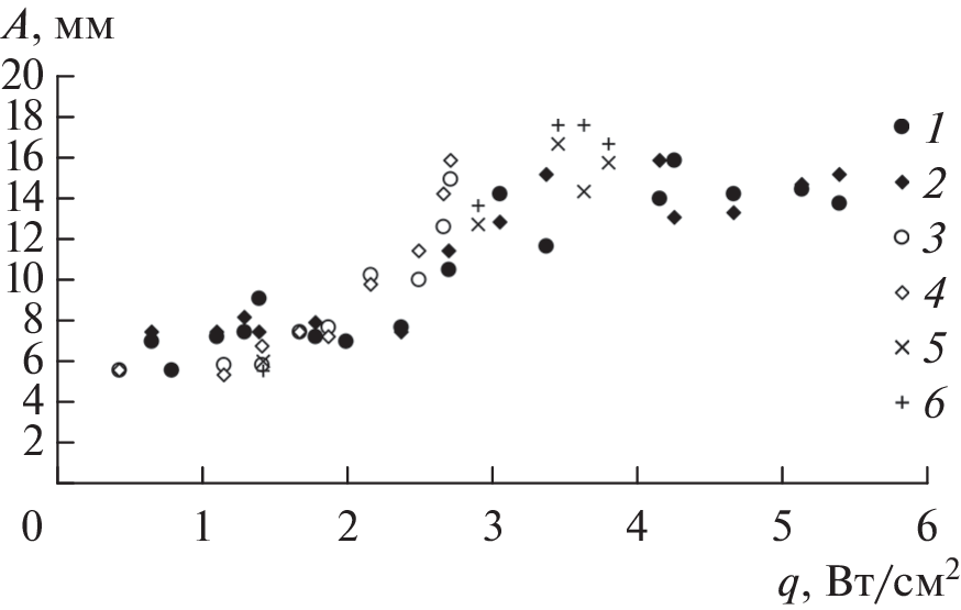Выполнено исследование течения пленки воды вдоль вертикального нагревателя при числах Рейнольдса 33, 50 и 105 и начальных температурах T0 = 15, 23, 30 и 40°C. Показано, что амплитуды зигзагообразного движения струй возрастают с увеличением плотности теплового потока. Наиболее интенсивный рост амплитуд наблюдается при развитии термокапиллярной неустойчивости в верхней части нагревателя. При высоких тепловых потоках, когда амплитуда зигзагообразного перемещения достигает достаточно большой величины, начинается процесс взаимодействия струй. Выделены несколько типов взаимодействия струй на поверхности нагреваемой пленки жидкости. Показано, что появление термокапиллярной структуры в верхней части нагревателя приводит к перемещению струй и повышению интенсивности теплообмена.