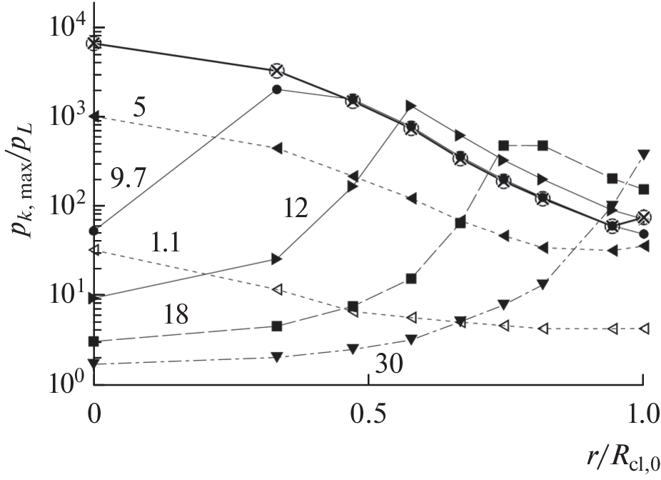 - Chahine G.L. Pressure Generated by a Bubble Cloud Collapse // Chem. Eng. Commun. 1984. V. 28. № 4–6. P. 355.