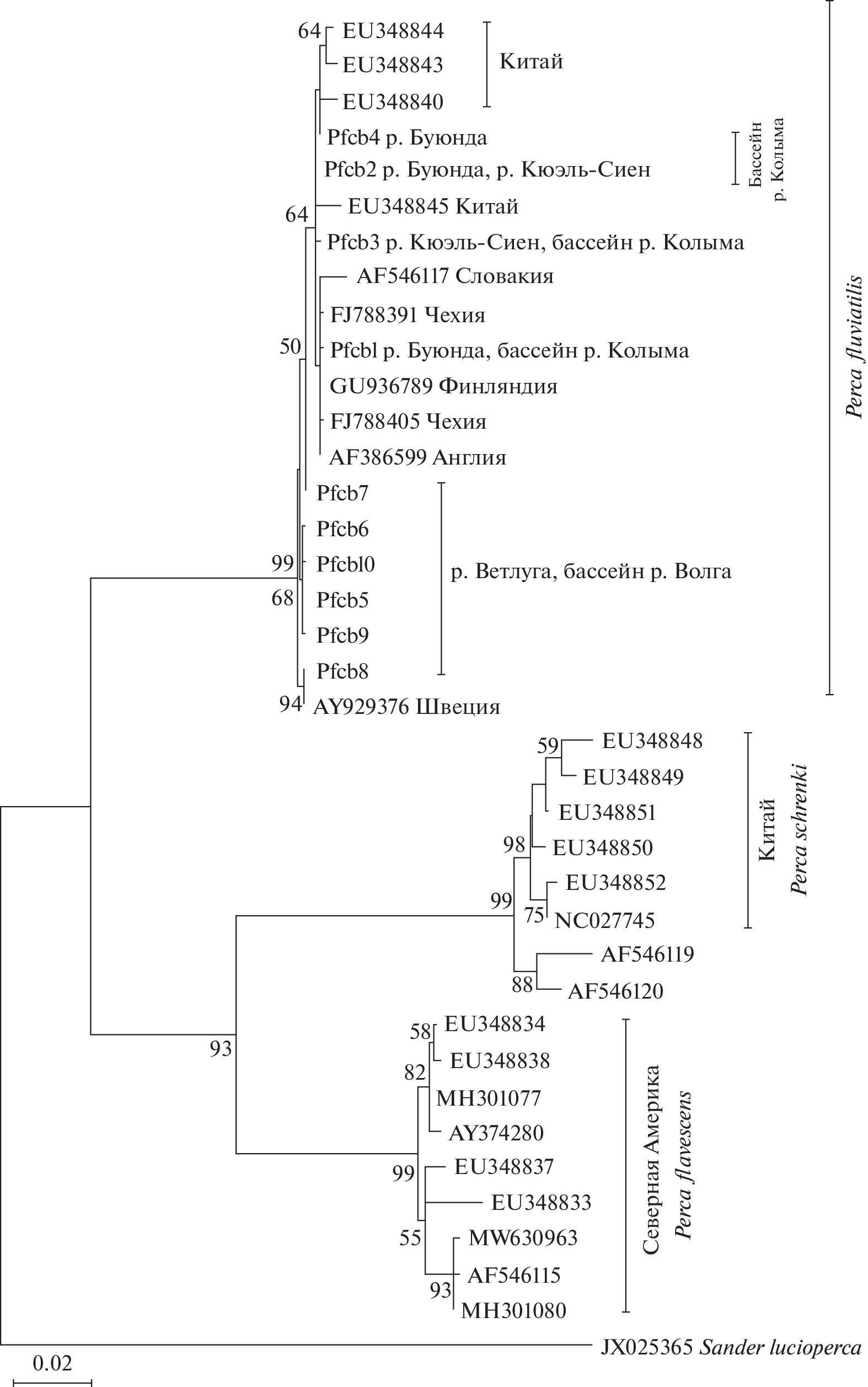 - Nesbo C., Fossheim T., Vollestad L., Jakobsen K. Genetic divergence and phylogeographic relationships among European perch (Perca fluviatilis) populations reflect glacial refugia and postglacial colonization // Mol. Ecol. 1999. V. 8. P. 1387–1404.