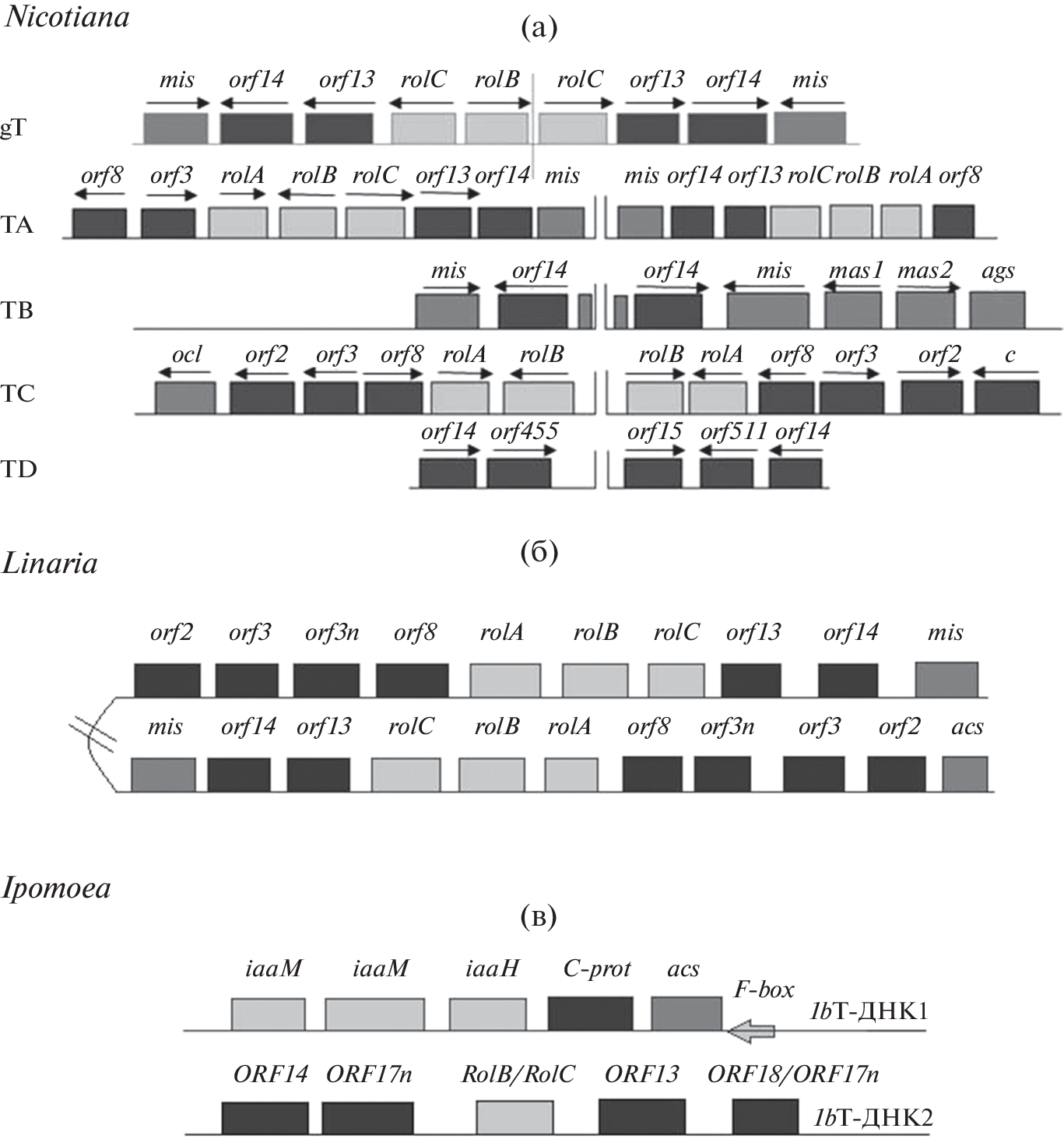 - White F.F., Nester E.W. Relationship of plasmids responsible for hairy root and crown gall tumorigenicity // J. Bacteriol. 1980. V. 144 (2). P. 710–720.